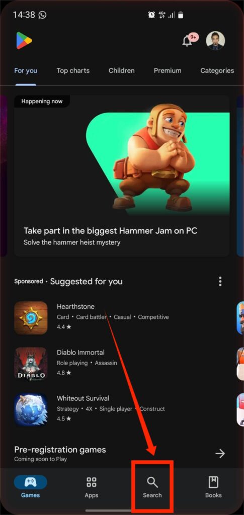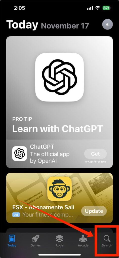 - În partea de jos a ecranului, vei vedea un tab cu denumirea Search (Căutare). Apasă pe acesta.