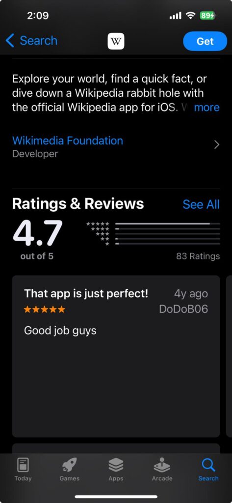 - După ce ai găsit aplicația dorită în rezultate, apasă pe ea pentru a vedea detalii suplimentare, precum descrierea, recenziile utilizatorilor și capturi de ecran.