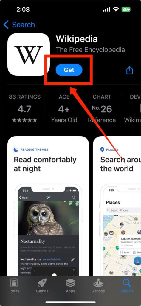 - Introdu numele aplicației pe care vrei să o instalezi în bara de căutare și apasă Enter. De exemplu, dacă vrei să instalezi „Wikipedia”, scrie „Wikipedia” în câmpul de căutare.