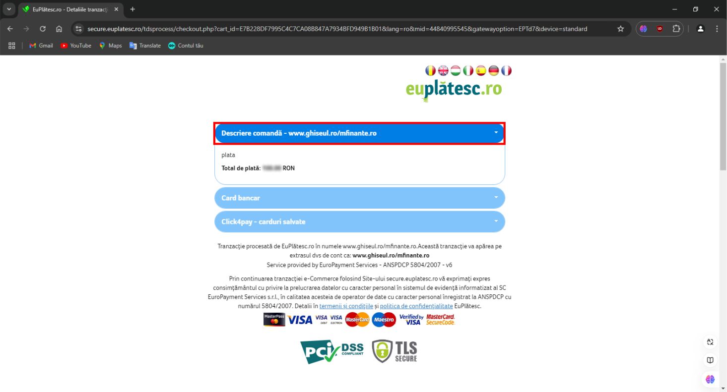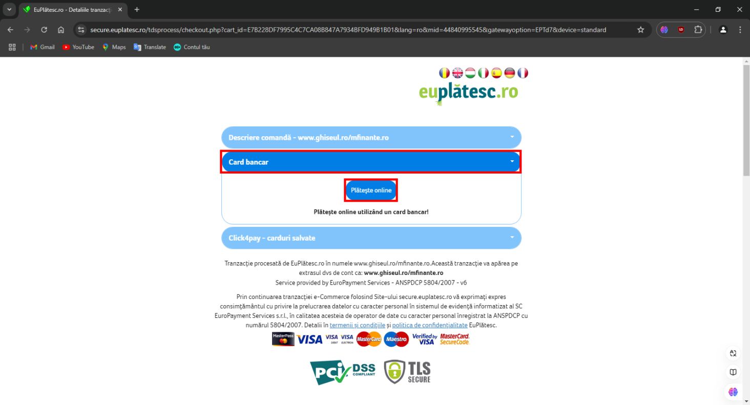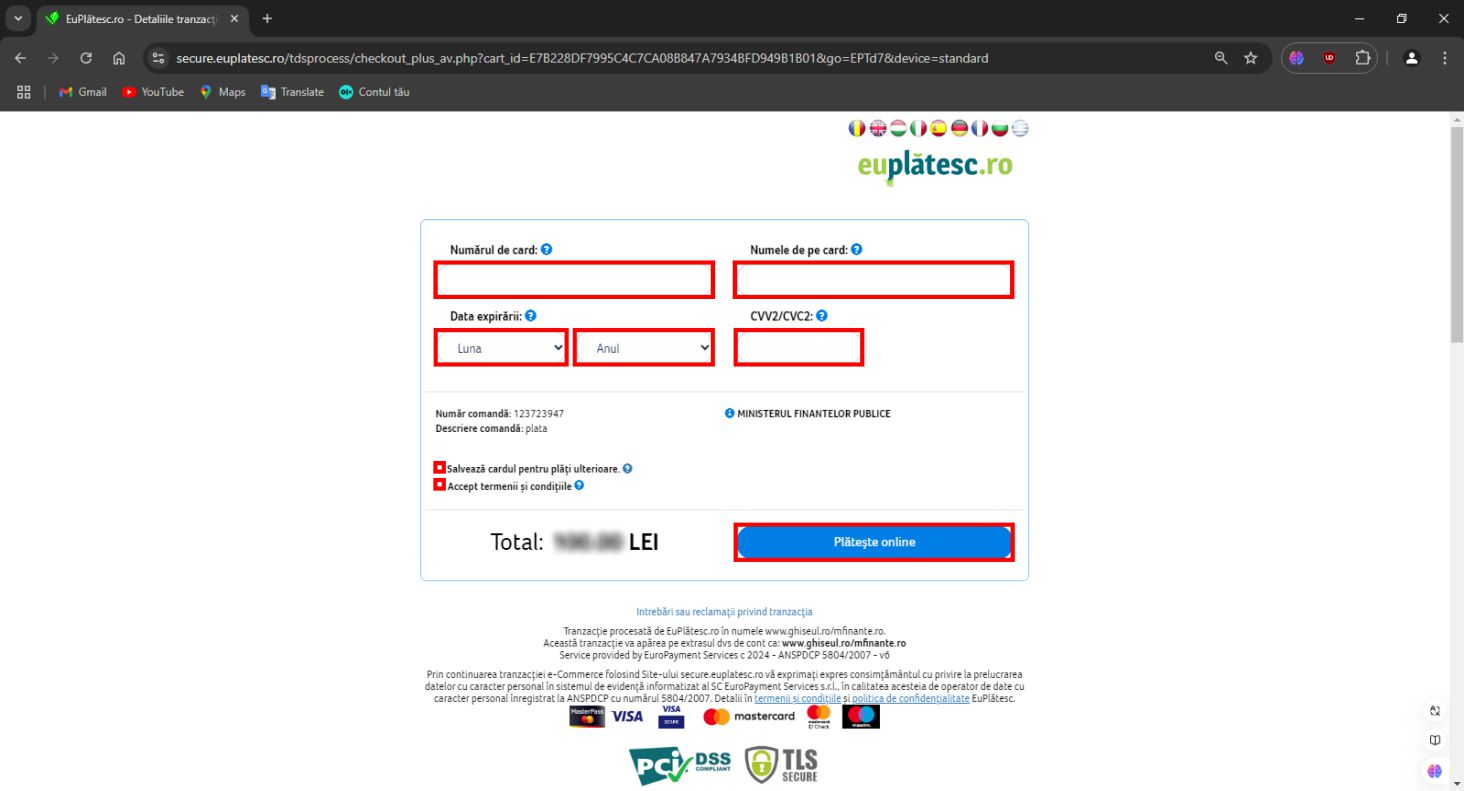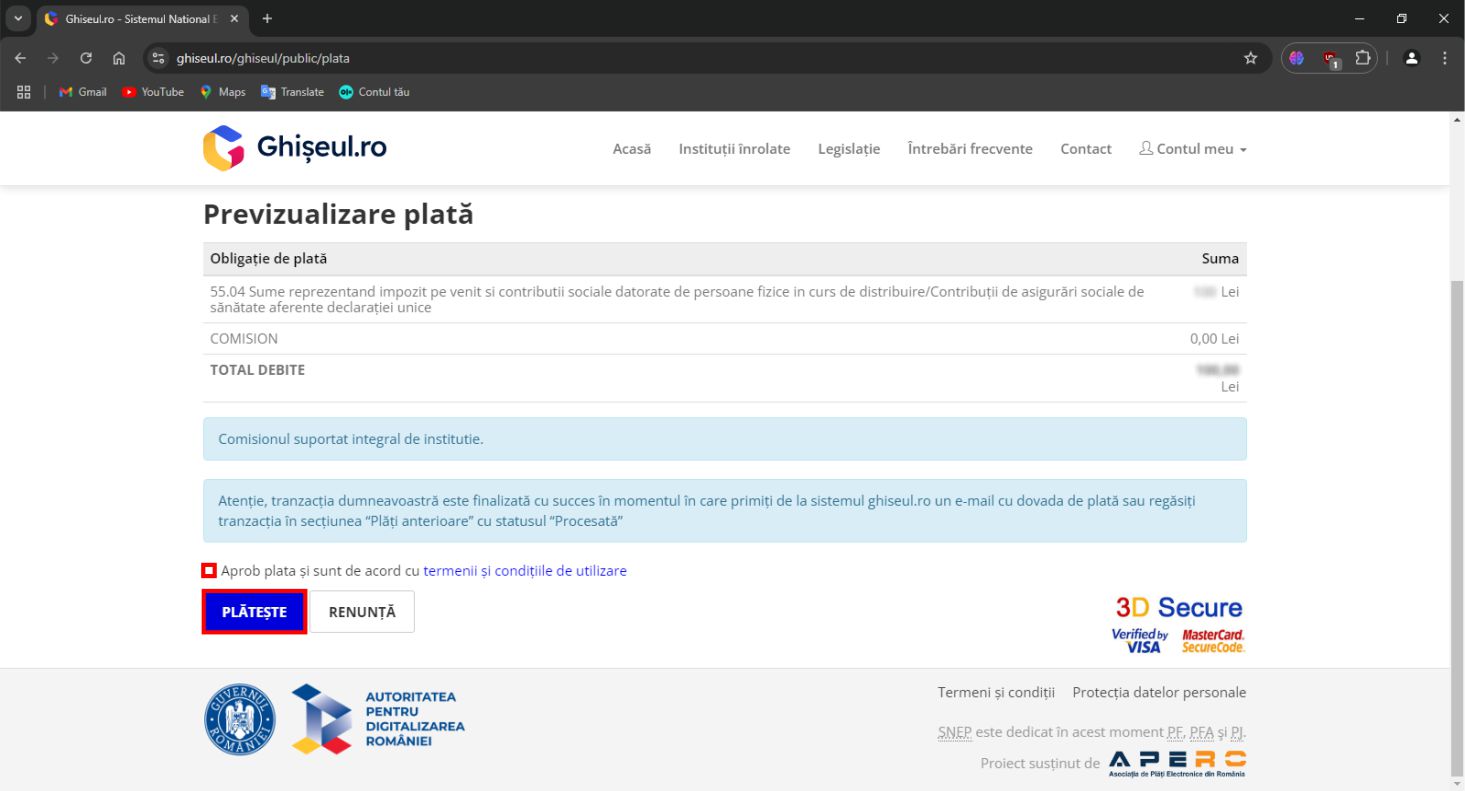 Pe platforma ghiseul.ro pot fi plătite Impozite şi taxe stabilite de instituţiile publice înrolate în sistem precum si amenzi contravenţionale cu deducerile aferente plăţii în 15 zile calendaristice.